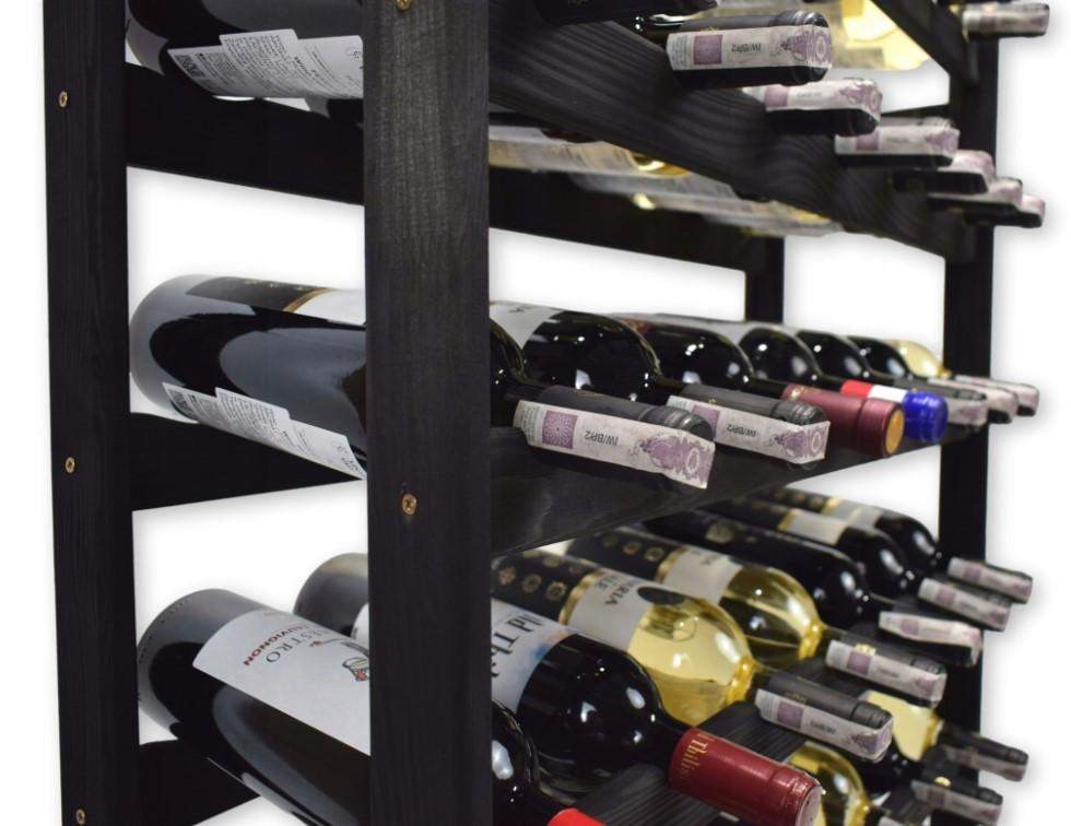 Dla miłośników wina prezentujemy elegancki drewniany stojak z miejscem na 56 butelek.