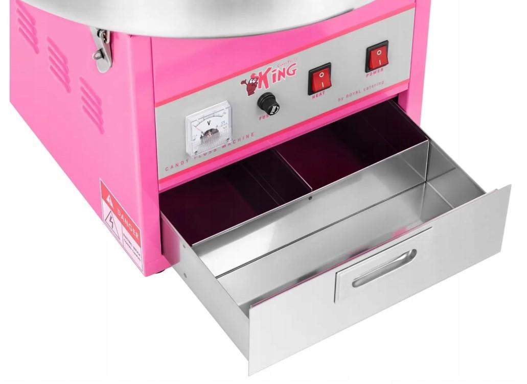 Profesjonalna maszyna do waty cukrowej marki Royal Catering doskonale sprawdzi się podczas festynów, w parkach rozrywki, wesołych miasteczkach, kinach, bufetach z przekąskami itp. Model RCZK-1200-W dysponuje rozwiązaniami, które sprawiają, że zda egzamin zarówno w stacjonarnym, jak i mobilnym wykorzystaniu. Twoi klienci docenią smak waty szczególnie w chłodne, zimowe dni. Zastosowanie barwników spożywczych lub aromatyzowanego cukru pozwoli urozmaicić smak przekąski!