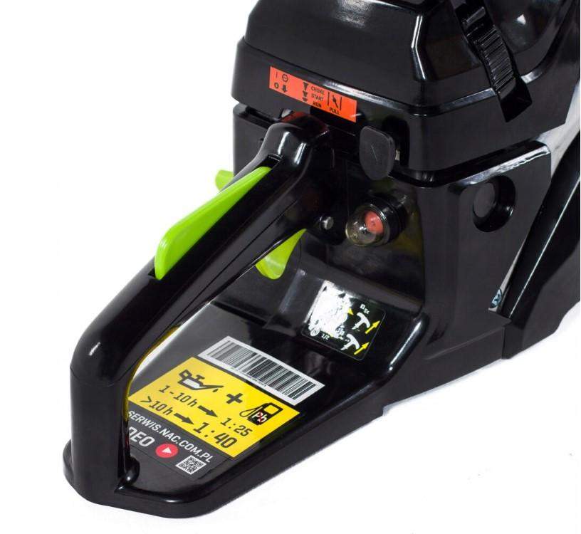 Pilarka została wyposażona w wysokiej jakości łańcuch i prowadnicę NAC 20″ z łożyskiem igiełkowym na końcówce, co: