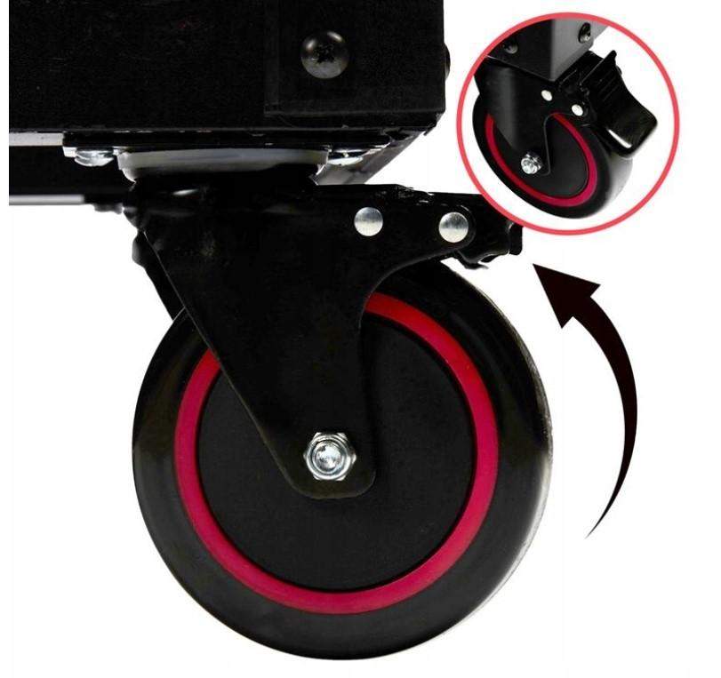 Duże kółka wyposażone w automatyczna blokadę a także hamulec zapewniający przy przemieszaniu szafy komfort bezpieczeństwa nawet na małych pochyłościach.