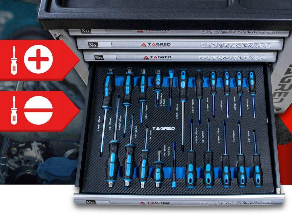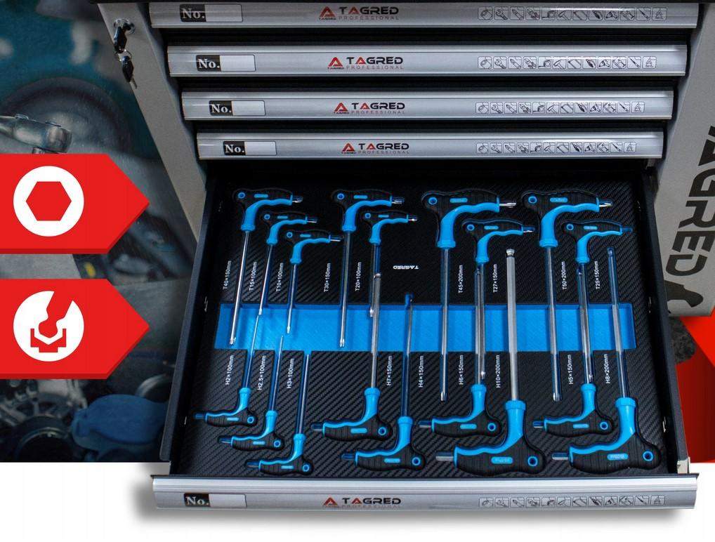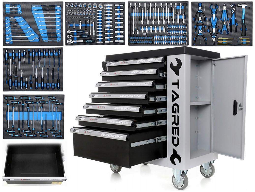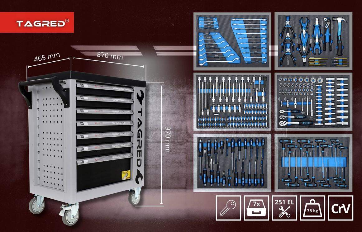 Szafa warsztatowa, wózek warsztatowy z narzędziami Tagred 251EL, grzechotki 72-zębne