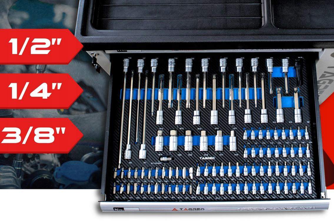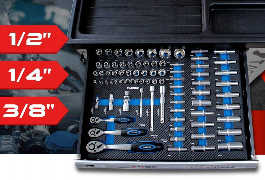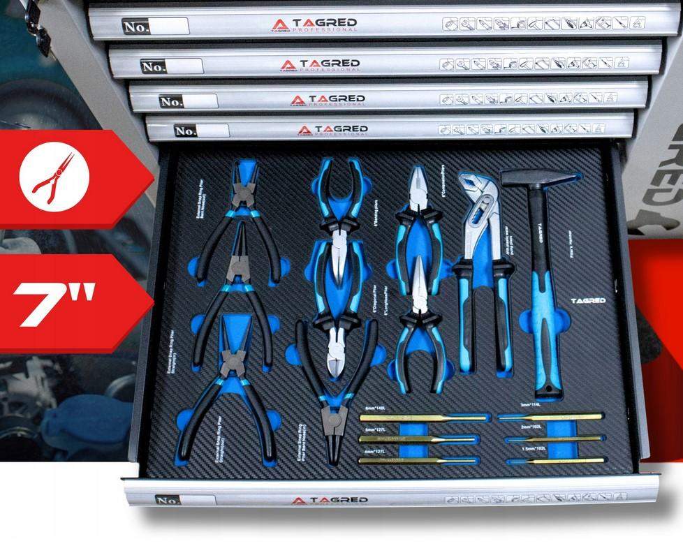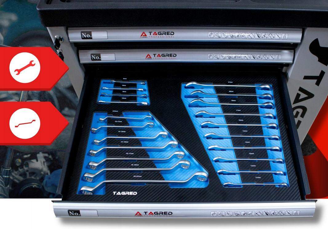 Szafa warsztatowa, wózek warsztatowy z narzędziami Tagred 251EL, grzechotki 72-zębne