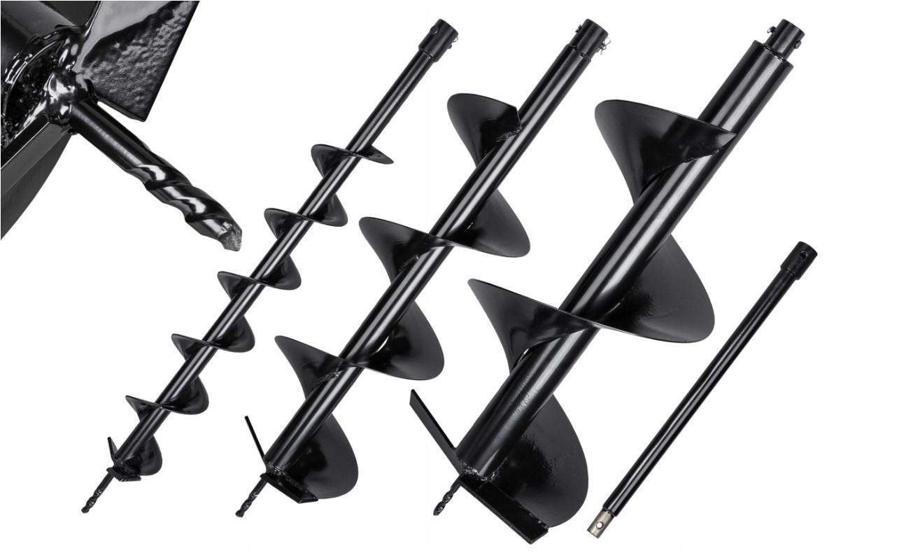 Teraz w zestawie z przydatną przedłużką (50 cm) oraz trzema solidnymi wiertłami o średnicach 10, 20, i 30 cm.